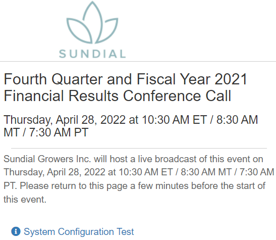 The stock touched a low price of 04668Recently in News on April 27 2022 Sundial Reports Full Year and Fourth Quarter 2021 Financial and Operational Results.